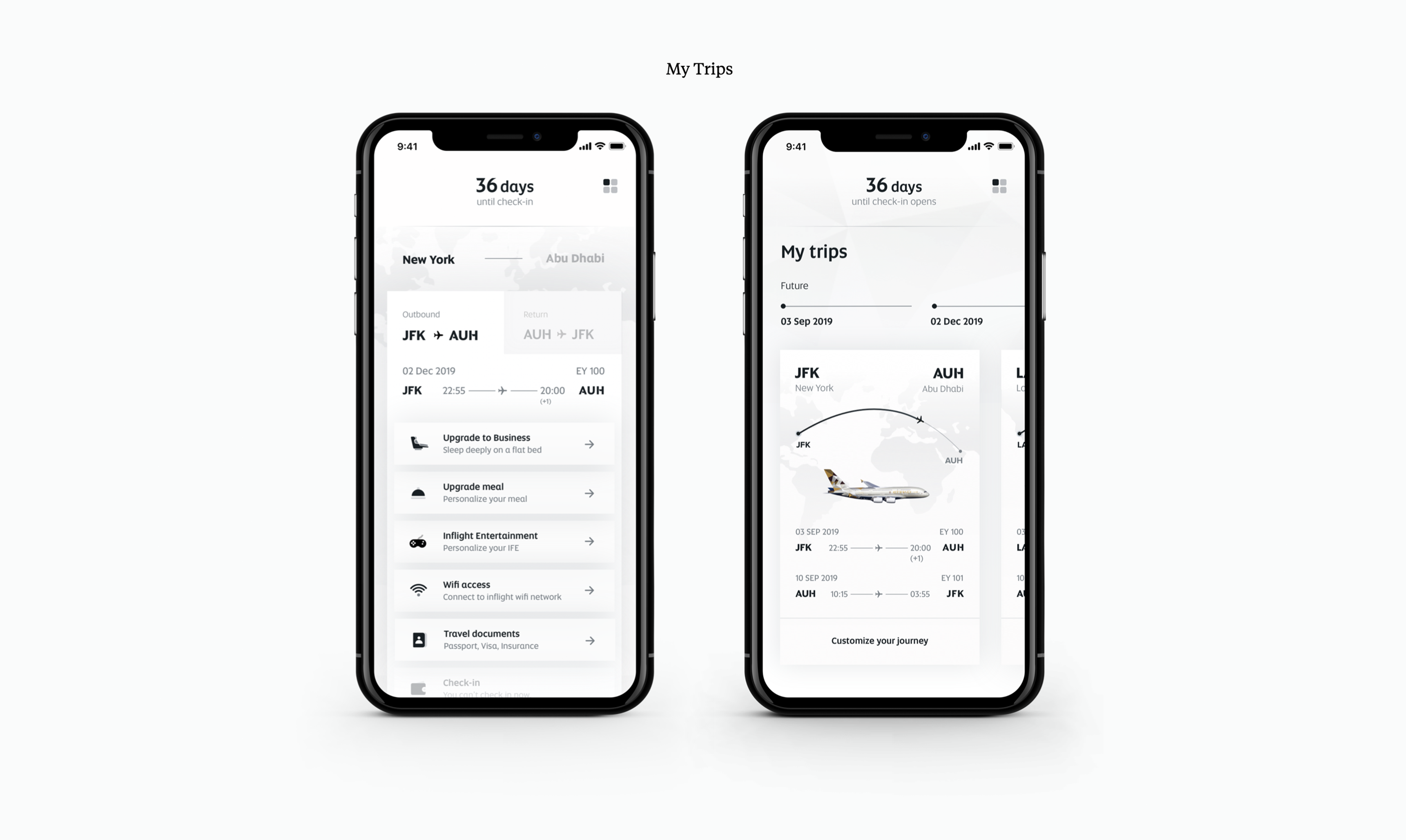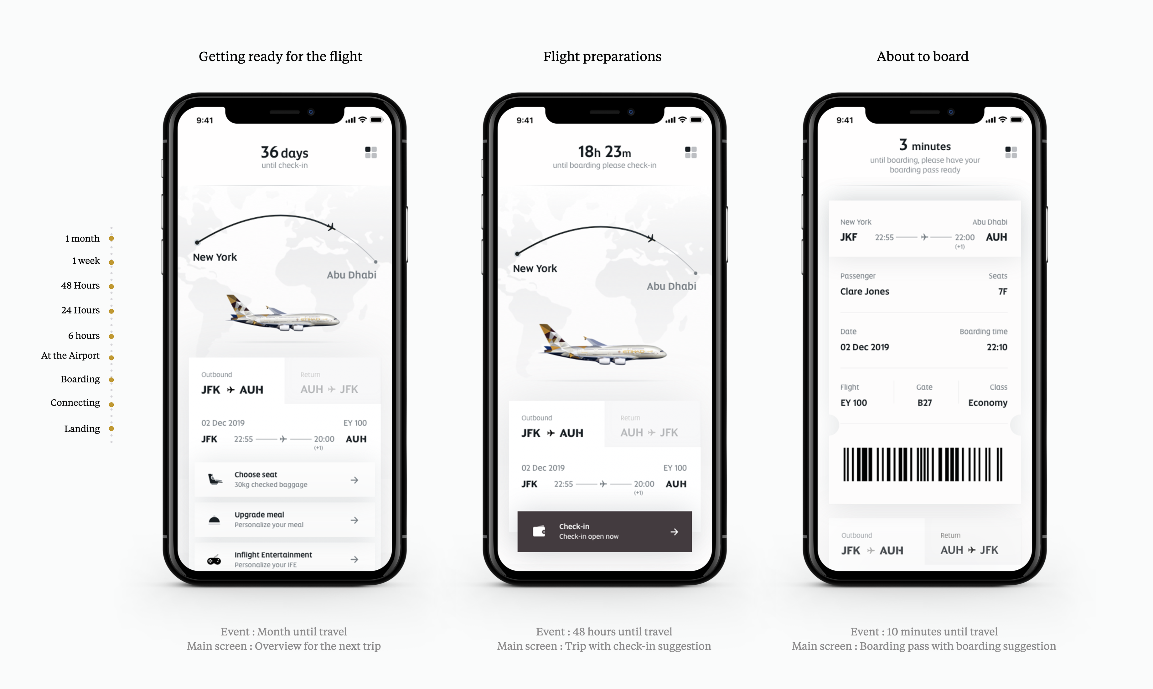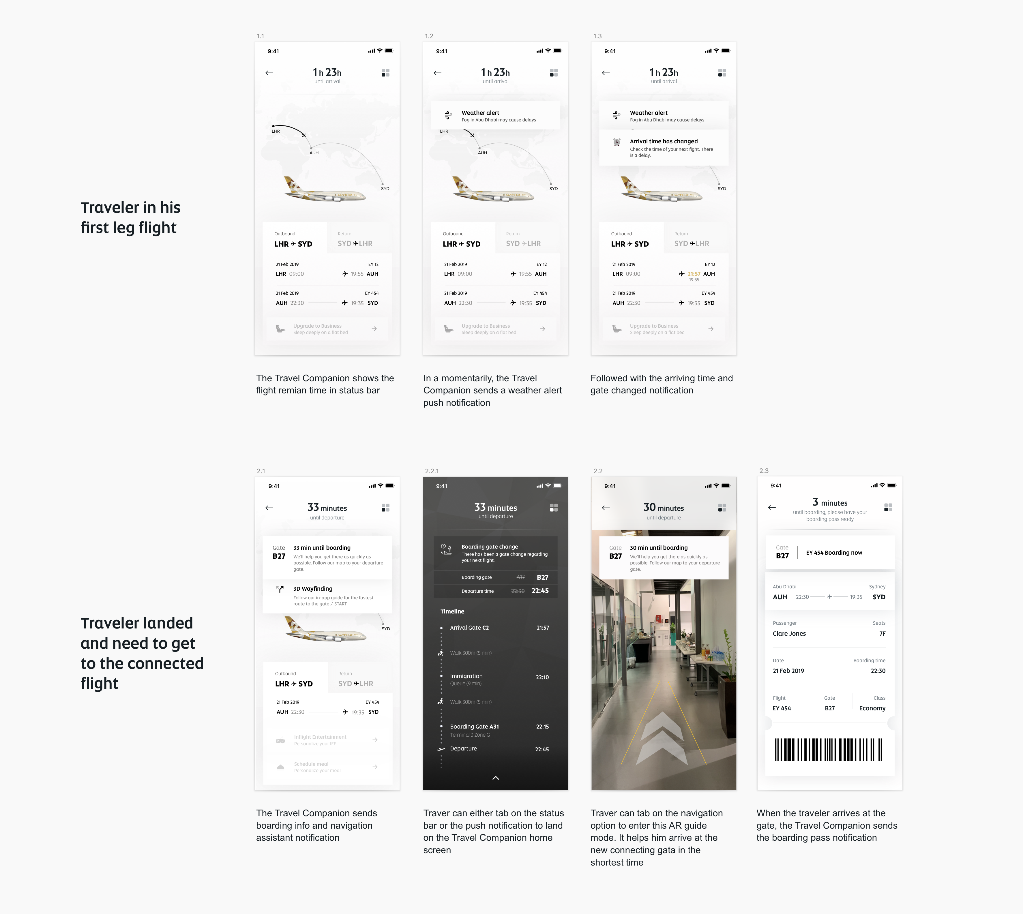 We started with explore possible solutions to integrate some of the important features from Etihad Guest, Etihad Guest Walletplus and Etihad Reward Card app, into the next-gen Etihad Airways app. We also incorporated the new services ideas from the workshop to design the concept of a context-aware travel companion and key screens.Concepts Explored